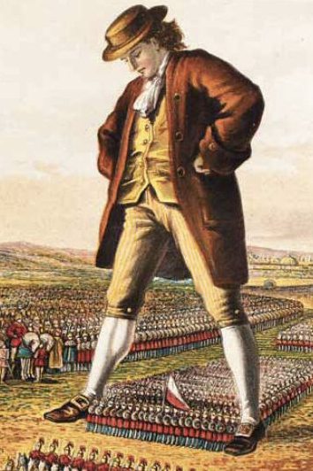 Critics have noted the extraordinary attention that Gulliver pays to clothes throughout his journeys. Every time he gets a rip in his shirt or is forced to adopt some native garment to replace one of his own, he recounts the clothing details with great precision. We are told how his pants are falling apart in Lilliput, so that as the army marches between his legs they get quite an eyeful. We are informed about the mouse skin he wears in Brobdingnag, and how the finest silks of the land are as thick as blankets on him. In one sense, these descriptions are obviously an easy narrative device with which Swift can chart his protagonist’s progression from one culture to another: the more ragged his clothes become and the stranger his new wardrobe, the farther he is from the comforts and conventions of England. His journey to new lands is also thus a journey into new clothes. When he is picked up by Don Pedro after his fourth voyage and offered a new suit of clothes, Gulliver vehemently refuses, preferring his wild animal skins. We sense that Gulliver may well never fully reintegrate into European society.
